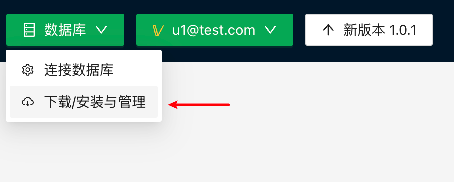 - 启动CherryN软件,点击右上角『数据库-下载/安装与管理』菜单,打开数据库管理弹窗