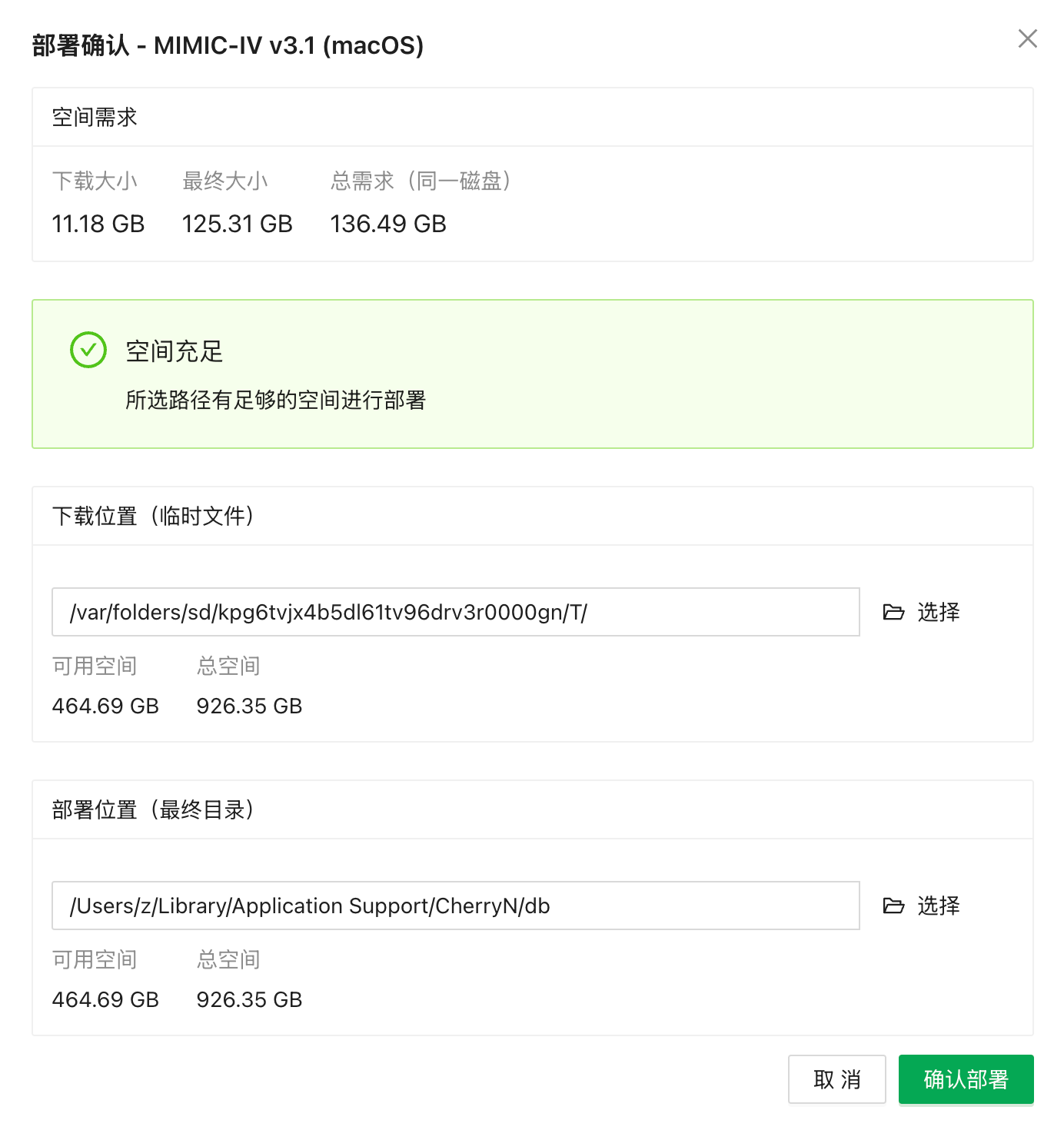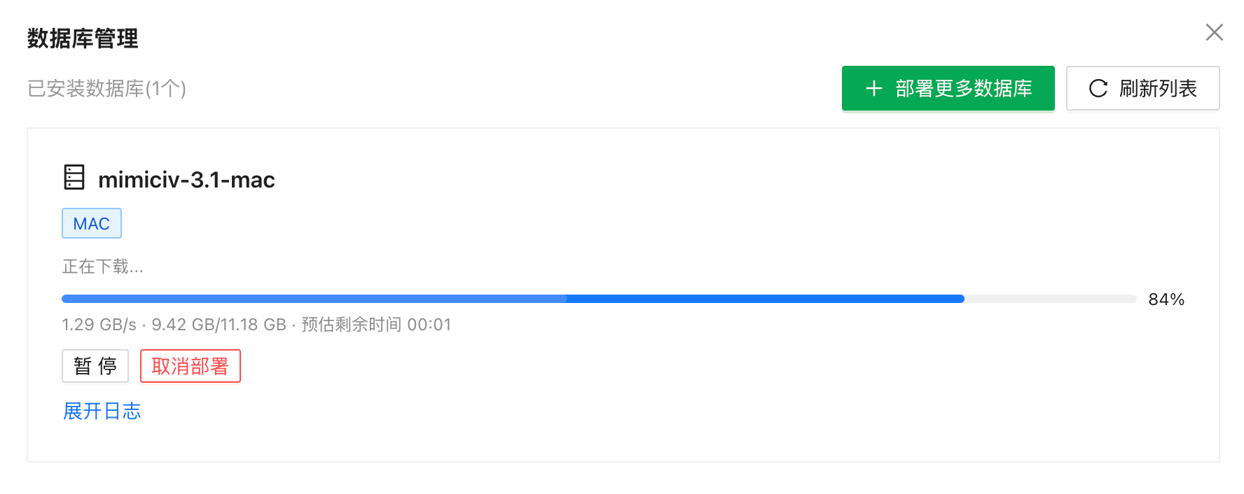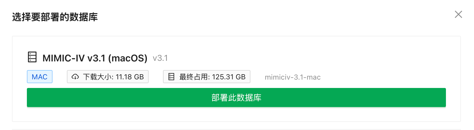 - 选择MIMIC-IV v3.1数据库(注意区分Demo和完整版),点击『部署此数据库』
